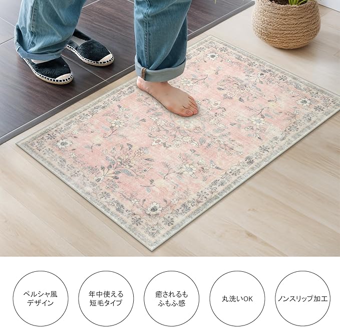 HAOCOO 玄関マット 室内 ペルシャ風 ラグマット 洗える 50х80cm 小さい おしゃれ 長方形 滑り止め 低反発 防音 屋外 泥落とし オールシーズン適用 耐磨耗性 軽量 花柄 コーラルピンク | KAZESHOP