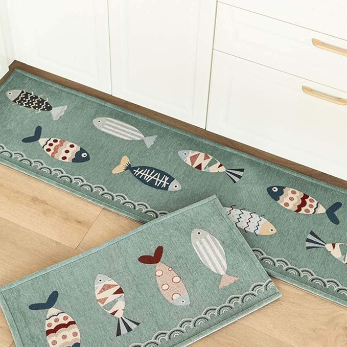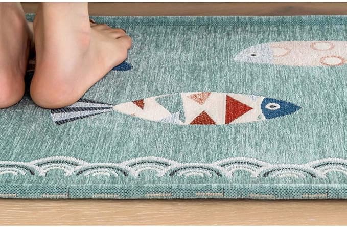 キッチンマット 120 ブルー すべり止め あらえる 魚柄 かわいい 台所マット おしゃれ 北欧 吸水 防ダニ 抗菌防臭 ずれない 洗いやすい 大判 床保護マット 玄関/廊下/ベランダ/ベッドサイド | KAZESHOP