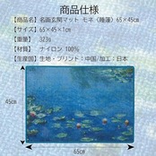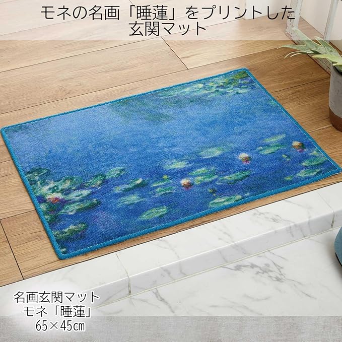 名画 玄関マット モネ 睡蓮 65 45㎝ 日本製 滑りにくい加工 室内 おしゃれ 北欧 大きめ 洗える 可愛い 業務用 風水 大きめ 洗える 厚さ1cm 大判 92149100 | KAZESHOP