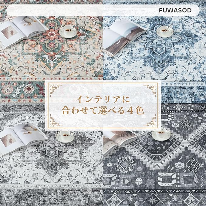 【ペルシャデザイン】ペルシャ風柄は鮮やかな色使いや複雑な幾何学的な模様、伝統的なペルシャの花模様を特徴としています。繊細で美しい柄のペルシャ絨毯風ラグを一枚敷くだけで、お部屋をパッと華やぐ空間へ変えてくれます。リビングルーム、ベッドルーム、キッチン、玄関など様々なシーンで活躍いただけます。