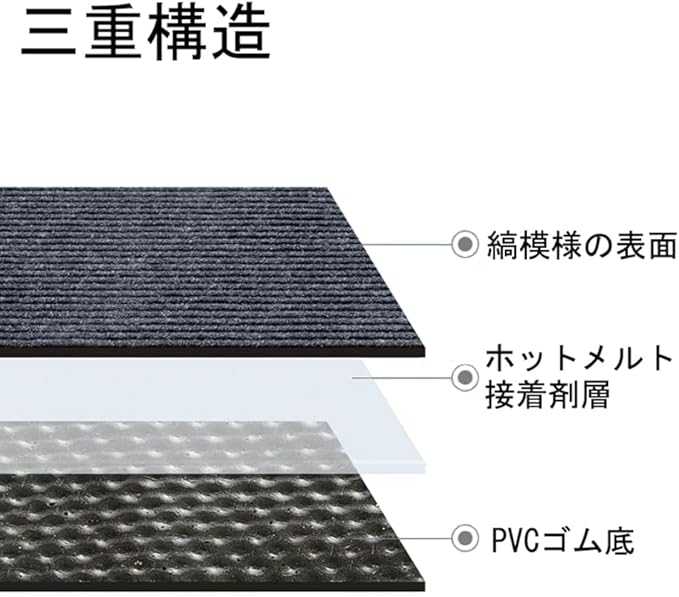 高品質な素材:ポリプロピレンとポリエステルの混紡でストライプ構造の丈夫で耐候性が高いな玄関マットです。裏面はPVC素材で加工されて、頻繫に踏むや擦りでも模様が変形にくい!耐久性も抜群し、簡単にズレません。長使用寿命なので、頻繁な交換や追加支払いの手間が省けます。