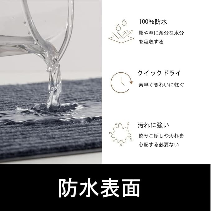 泥落とし&吸水:細かい泥落としや吸水用にお使いください。オフィス、事務所、飲食店、学校、公共施設、レジャー施設といった店舗など、業務用として最適です。お店、オフィスや事務所を整理整頓し、お客様に良い印象を与えましょう!