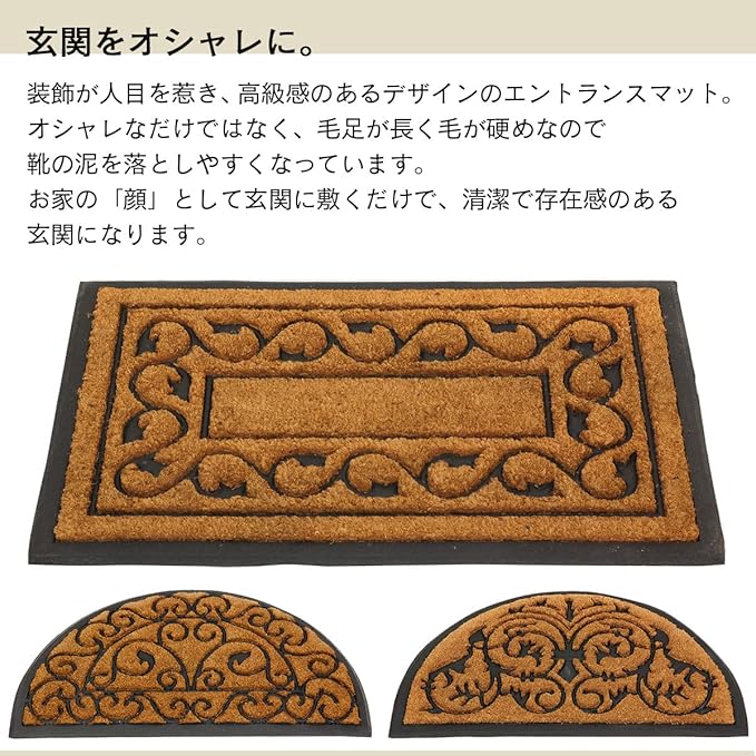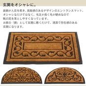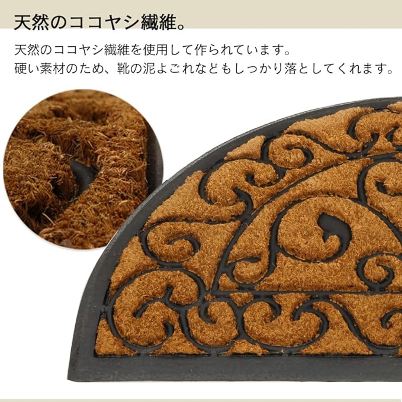 天然のココヤシ繊維を使用した玄関マットで、硬さがあり靴の泥汚れもしっかり落としてくれます。裏面はゴムを使用していますので、滑りにくく安心してご使用していただけます。