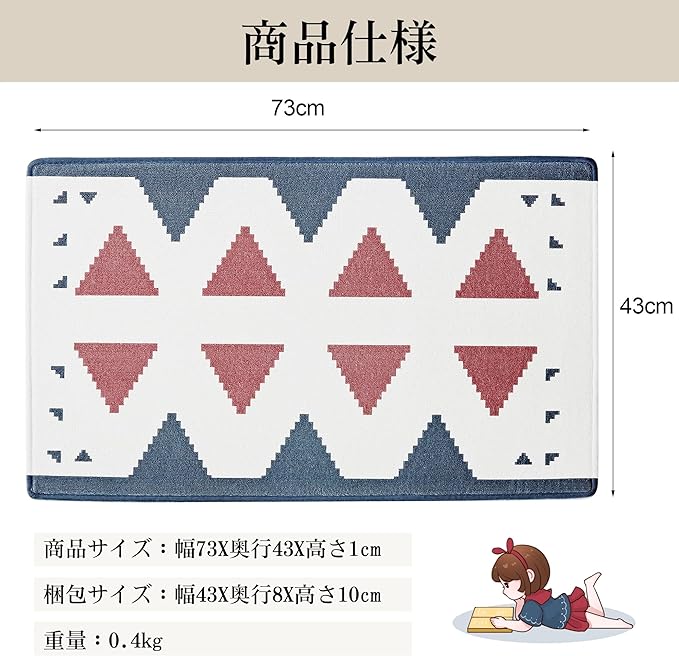 【商品仕様】商品サイズ:幅73X奥行43X高さ1cm;梱包サイズ:幅43X奥行8X高さ10cm;重量:0.4kg。