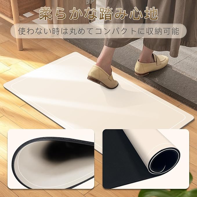 【ソフトな踏み心地&滑り止め加工】 割れる心配のない、軽くてやわらかな素材は床を傷つけなく、丸めてコンパクトに収納することも可能です。裏面には滑り止め加工を施し、マットがズレる心配なしです。