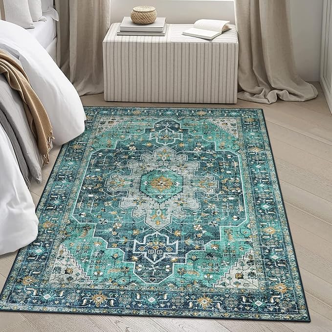 玄関マット 室内 屋外 50x80cm,カーペット ペルシャ風 ラグ 小さめ おしゃれ じゅうたん 厚手 地毯 洗える 絨毯 滑り止め リビングマット 防音 フロアマット 抗菌防臭 花柄 低反発 可愛い 北欧 | KAZESHOP