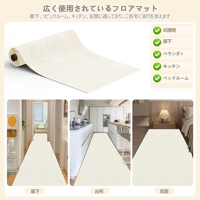✨【簡単な裁断と設置】廊下マットは裁断しやすく、廊下の空間に適しています。取り付ける前に長さと幅を測って、適切なマットサイズを選んでください。床をきれいに拭き、廊下マットを床に敷けばいい。接着剤やその他の固定工具を使用する必要はなく、敷設過程は簡単で迅速である。