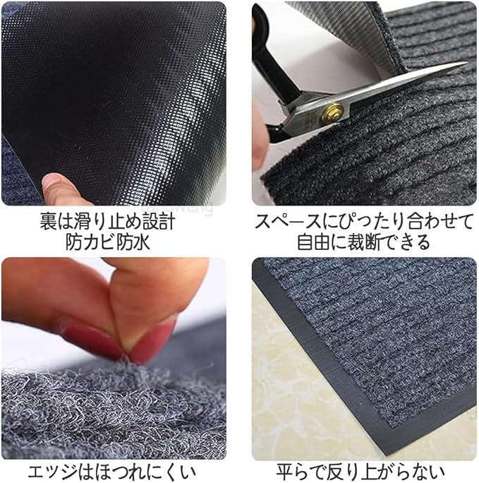 【滑り止め・騒音対策】玄関マットは正面が溝のストライプのデザイン、優れた強度と耐摩耗性を持って、より長く使えます。裏面にはしっかりと滑り止め加工が施されますので、マットのズレを防ぎます!子供とお年寄りがいるの家庭でもお使いいただけます。吸音性も高い、様々なところに適しています。足音も気にならないほど静かな使用感を提供します。