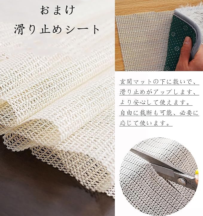 【商品仕様】素材:正面ーポリエステル、背面ーPVC。【おまけ:ホワイト滑り止めシート。二重滑り止め。】サイズ:160*300cm。高品質な素材を使用しており、柔らかく踏み心地が良いです。模様が頻繁に踏んでも変形しにくく、吸水性や耐摩耗性にも優れています。抗菌防臭加工が施されており、綿毛が濃密で毛も落ちにくいです。また、簡単にカットできるので、好みのサイズや形に調整でき、風にも飛ばされにくい仕様です。