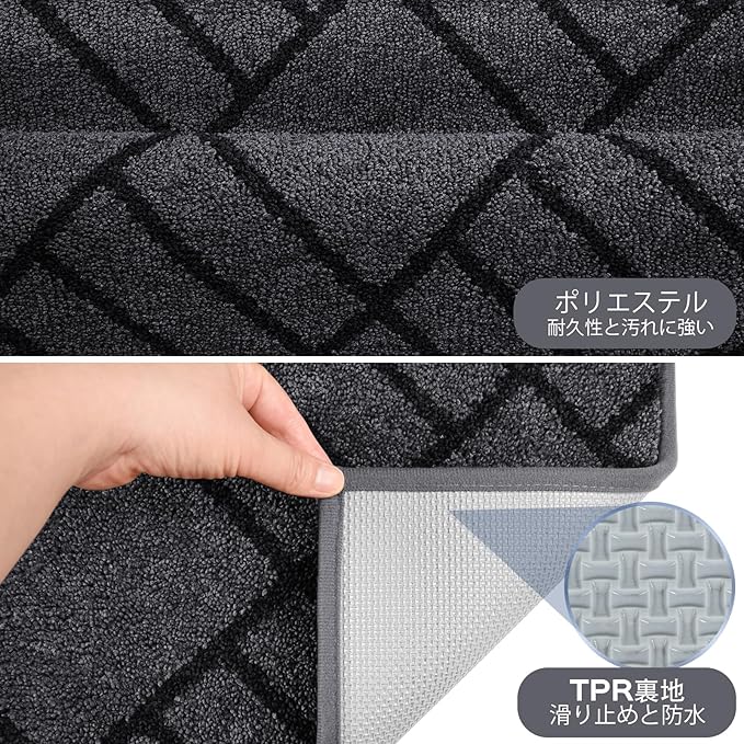 滑り止め: プレミアムドアマットは、防水熱可塑性ゴム製の滑り止め裏地で設計されており、最大限のグリップと安全性を保証します。