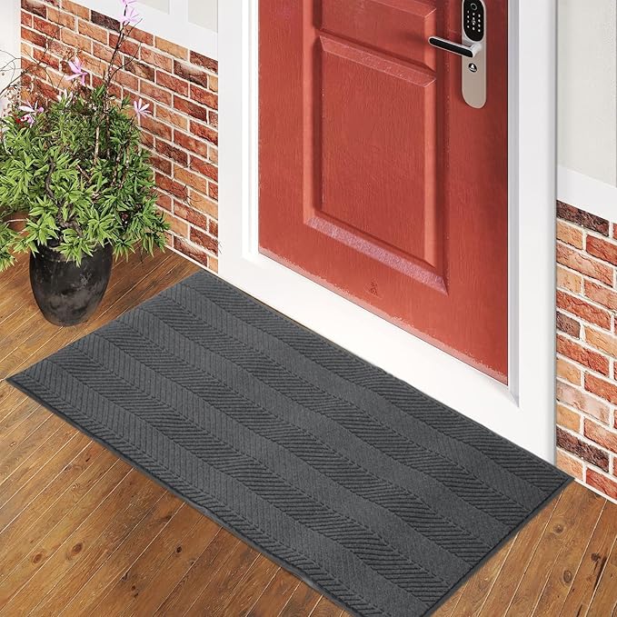 KLD 玄関マット 屋外 室内 滑り止め 業務用 家庭用 速乾 吸水 吸油 泥落とし 洗える エントランスマット 裁断自由 PVC素材 エコ無毒無臭 耐磨耗性 玄関 オフィス お店(90*180) グレー 90cm*180cm | KAZESHOP