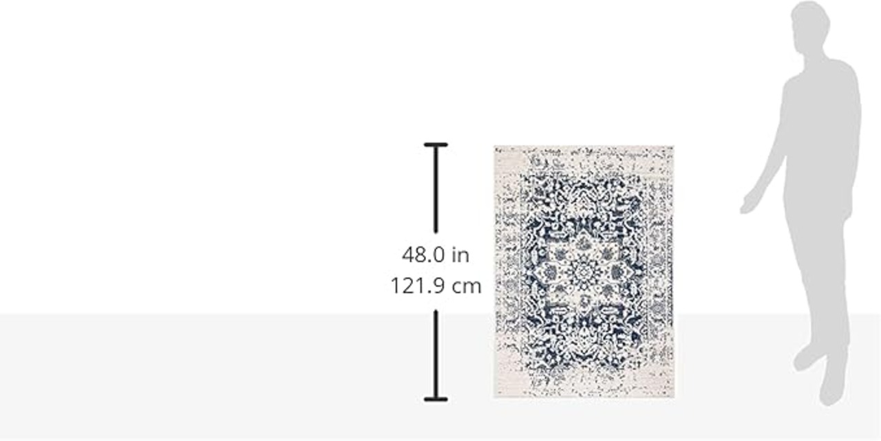 SAFAVIEH (サファビア) Madison Collection (マディソンコレクション) アクセントラグ クリーム/ネイビー 69 122cm オリエンタルメダリオン スノーフレーク ディストレスド加工 毛が抜けないタイプ リビング/ベッドルーム 【日本正規輸入品】 ニューヨークブランド MAD603D | KAZESHOP