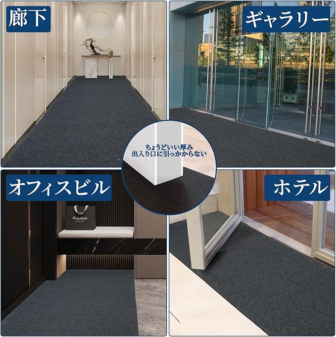 幅広く適用性:多用途マットです!ドアマット、階段マット、玄関マット、キッチンマットなどのインテリアマット等、様々な使い道でご利用いただけます。飲食店や美容院、学校、公共施設、レジャー施設といった店舗など、業務用として最適です。