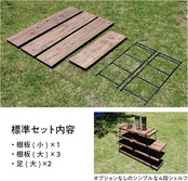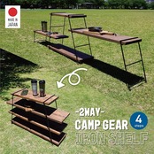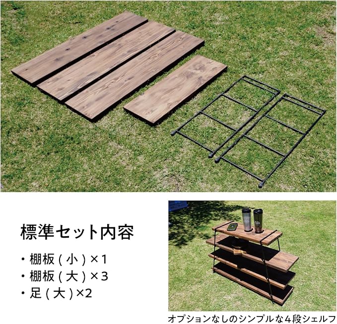 見せる収納を楽しめる天然木を使用したお洒落なラック。工具不要で組み立て簡単。4枚の棚板と4つのアイアンで好きにアレンジ可能。アウトドアの使用も◎安心の日本製