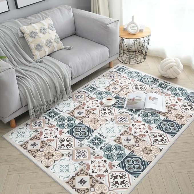 カーペット ラグ マット ペルシャ風 絨毯風 花柄 オールシーズン適用 ボヘミアン柄 滑り止め付き 寝室 リビング 玄関マット 地毯 じゅうたん 洗える 防音マット 防ダニ 防臭 (柄A, 120 160cm) | KAZESHOP