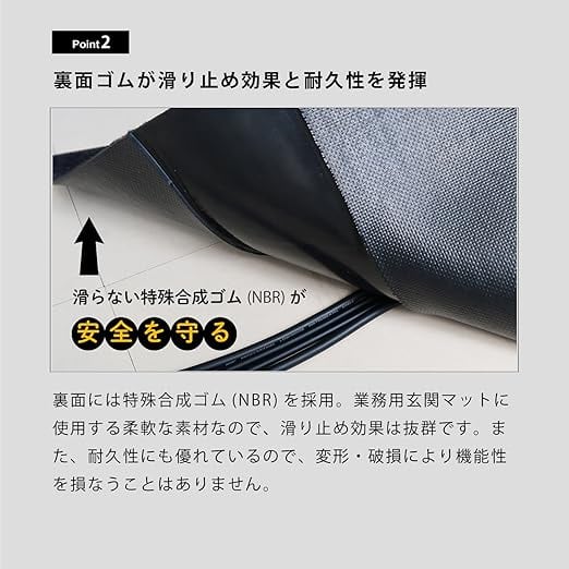 マット裏面に柔軟性の高いラバーを採用、床面にピッタリとフィットし、ズレやたくれが発生しにくい設計。