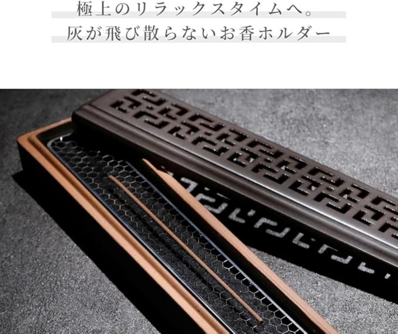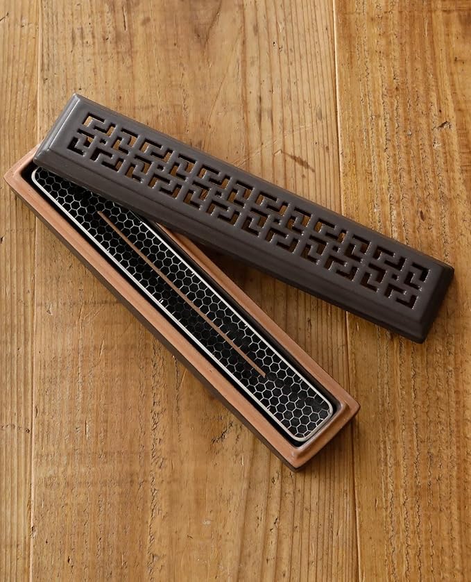 【セラミック製の香立て】 上質なセラミック製の香立ては、燃え尽きることがなく耐久性に優れています。灰をしっかりと受け止める設計で、お香を清潔に楽しめ、お手入れも簡単。蓋付きなので、風や扇風機を使っていても灰が舞い散らず、安心してご使用いただけます。偶発的な接触によるやけどや消火のリスクも軽減します。