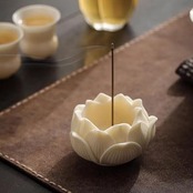 【蓮の花デザイン】線香立て良好な質感、ミニマムでシンプルなデザイン、美しくモデリングされた蓮の花のフォルム,熟練した職人が1個ずつ丁寧に手造りで作られたお香立てです。