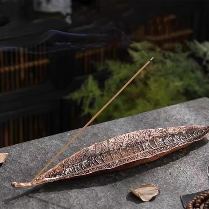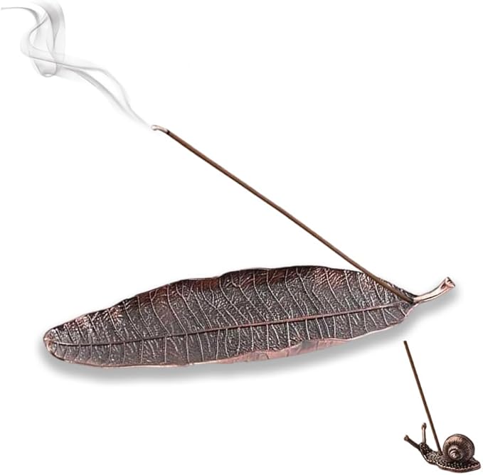 【商品仕様】材質:亜鉛合金、菩提樹の葉香皿 1個、カタツムリ香立て 1個、香皿は長さ25cm 幅5cm 高さ1.8cm、型番:ラージ、カラー:赤古銅。お香のサイズに対応:外径1.5~2mm、長さ11cm~22cm程度のお香が使用可能ですので、ご購入の際はご確認ください。カタツムリは長さ3.8cm 高さ1.1cmです(短香に合う)、クリーニングブラシ1本。