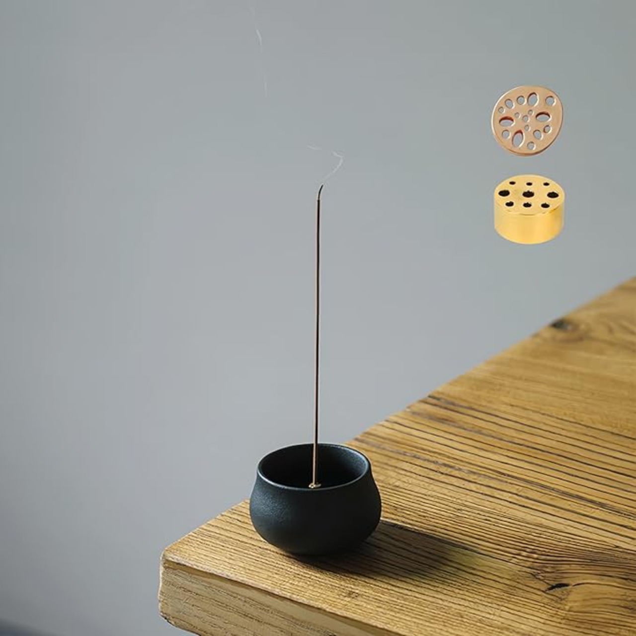 【多機能な香立てデザイン】 付属の真鍮製9穴お香たてと蓮根形状お香立ては、多様な太さの線香に対応できる巧妙なデザインです。この多機能性により、香炉は様々な場面で利用でき、日常生活の中で多様な香りの楽しみを提供します。特に、お茶会や書道、瞑想などの場において、心地よい香りを漂わせ、リラックスした雰囲気を演出します。