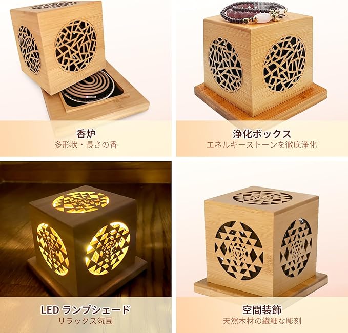 1.ロ-ズの香りと竹の調和、至福のリラックス空間 、香炉[金属の網が付属]11.5*11.5*11.5cm/190g+渦巻香 40片、渦巻香は、上品な口-ズの香りでお部屋全体を包み込み、日々のストレスを癒します。纎細な透かし彫りが美しい竹製スタンドは、お香を焚く時間をより-層おしやれで特別なものに変えるインテリアです。