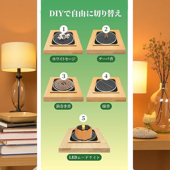 2.驚くほど万能。あらゆるお香に対応 付属の金属メッシコを使用すれば、スティック・コ-ン・渦巻きなど、あらゆる形状のお香を簡単にお楽しみいただけます。伝統的な線香からユニ-クなデザイン香まで、あなたのお気に入りを見つけることができます。