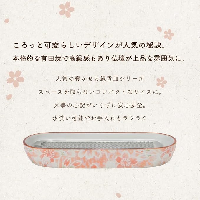 サンメニー 寝かせる 線香皿 本格 有田焼 お手入れ 簡単 日本製 インテリアに馴染む おしゃれ お 香 線香 焼香 インセンス 仏具 現代仏壇 お仏壇 天音 桃花 ピンク お供え お焼香 線香立て インセンスホルダー コンパクト 小さい 小物 幅5.3 長さ13.6 高さ2.0cm [Sunmany] | KAZESHOP