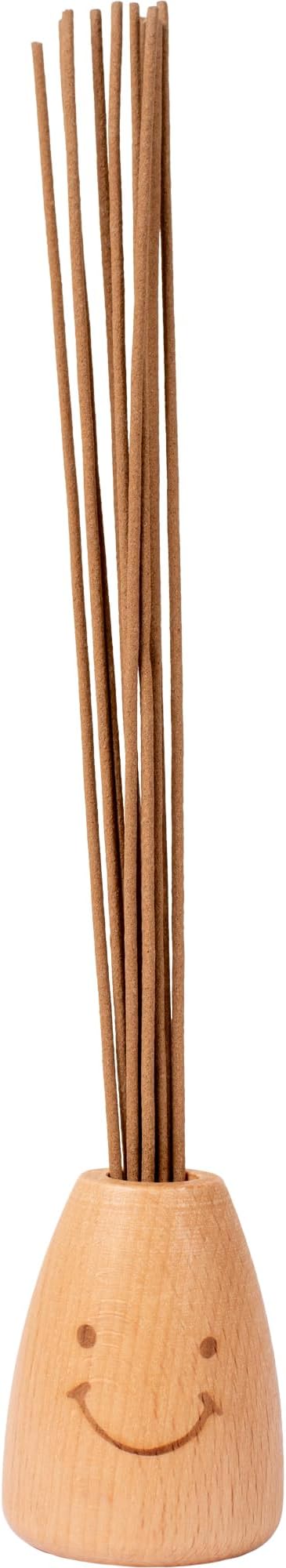 【詳細】高さ : 5センチ / 穴の大きさ : 1.2センチ / 素材 : 木製 【お香差し】インセンススティックなどを指しておくことで気軽にお香を焚けるだけでなく、ディフューザーとして焚く前の香りも愉しむことができます。 【デザイン】かわいいスマイルグラフィックですので、マンションやアパートなど、仏具が浮いてしまうような現代のお部屋でもインテリアとして馴染みます。 【用途】長さ約20cm程度までのスティック型のお香をそのまま刺して好きな場所に置いておきます。ポップなデザインではありますが仏壇の近くなどに置いておき、手軽にお線香を焚くためにも使用できます。注意) お香立てではないので差したままお香を焚かないでください。事故の原因になります。