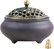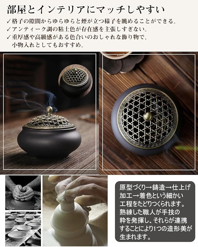 NGE香炉 お香立て 陶器 真鍮の蓋付き おしゃれ シンプル 難燃綿と香立てつき アロマ・コーン・スティック線香に対応 手入れ簡単 アジアン リラックス 癒やし ヨガ 瞑想 浄化 香道 仏具 仏壇用 インテリア アンティーク 丸香炉 | KAZESHOP
