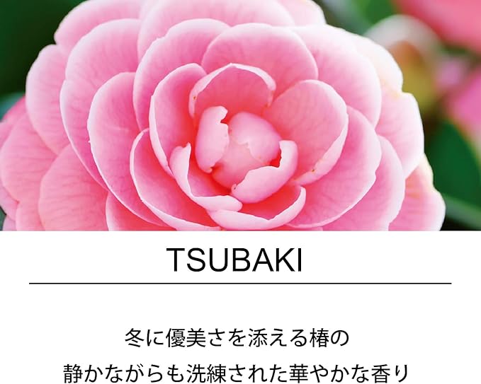 優美さを添える椿の、静かながらも洗練された華やかな香り洗練された芳香で、お部屋に落ち着きある雰囲気を演出します。
