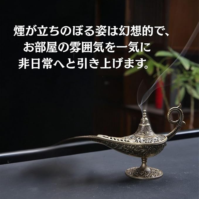 アラビアンな世界観を演出する、幻想的なランプ型の香炉です。まるでアラジンの物語に登場するような形状でお香立てだけでなくインテリア雑貨としてもお使い頂けます。