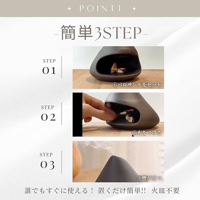 パロサント、セージ、線香に対応したマルチホルダーとして活躍。さらに、鍵やアクセサリーを置くトレイとしても使用可能。おしゃれで実用的なアイテムは、誕生日・記念日などのギフトにも最適です。