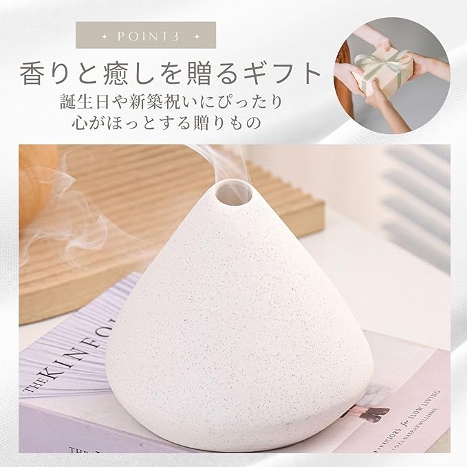 書斎・ヨガルーム・玄関・寝室・キッチンなど、場所を選ばず設置可能。心を落ち着かせる香りと、シンプルなデザインで空間を美しく演出します。