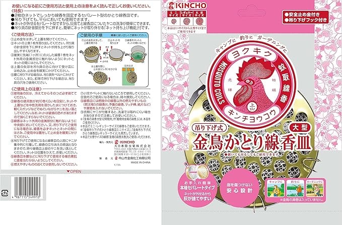 商品紹介 ●置いても吊るしても使える大型かとり線香皿。●ミニから大型まで全サイズの蚊取り線香に使えます。●ネットが外せるから灰が捨てやすく、お手入れが簡単なセパレートタイプ。●ネットが外せるセパレート型ですから、灰捨てと線香皿についたヤニの洗浄が簡単にできます。●吊り具の針金部分を下に押すと、簡単にネットが取り外せる「ネット持ち上げ機能」付です。 原材料・成分 ★