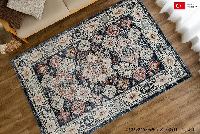 【輸入カーペットを安心してご利用いただくためのお願い】 ●輸入ラグに関して ※同じ商品でも製造ロットの違いによって、サイズや、色味、柄模様の左右が反転していたり、位置がズレている場合がございます。ただし、現地の工場や倉庫での検品をクリアした商品を輸入しています。あらかじめご了承くださいませ。/ ●においに関して ※ご使用当初、裏面に塗られる仕上げの接着塗料(ラテックス剤)のにおいがする場合がございます。人体への影響はありませんが、においに敏感の方や、ご心配の方はご理解の上ご購入お願いいたします。開封後常温のもとで気化(蒸発)するため、においはご使用につれてなくなります。気になる場合は風通しの良いところで陰干ししていただきますと、より早く解消されます。/ ●サイズに関して ※カーペットの製法上、表示サイズより0~3%の誤差がございます。/ ※いずれも商品の初期不良ではございませんので返品・交換は行なっておりません。(※お客様で返品の送料ご負担によるキャンセルは、返品規定に基づきお受けさせていただきます。)/ ※裏面の製品シールは剥がさないでご使用ください。