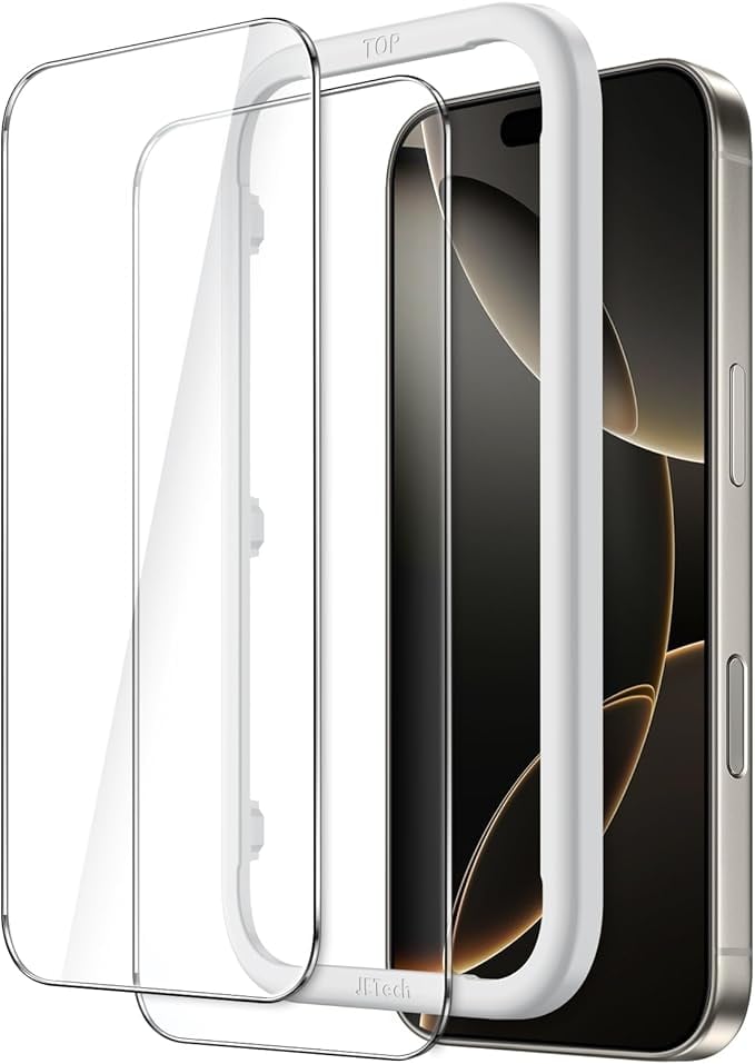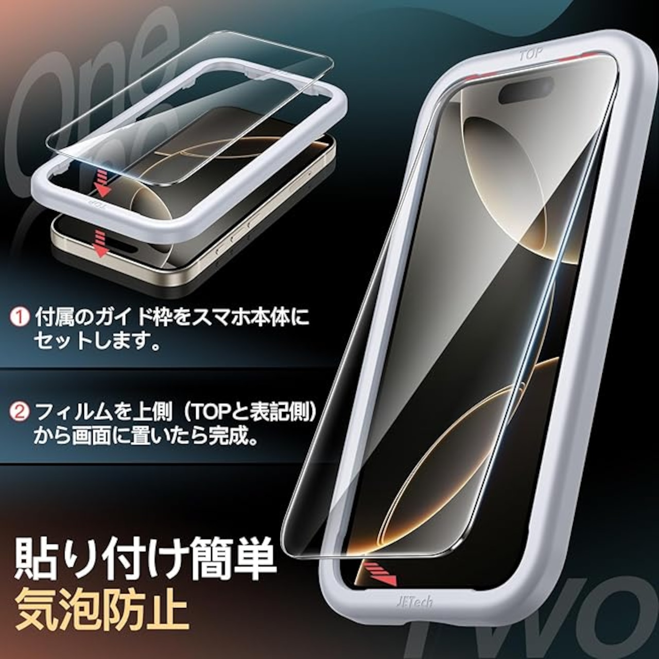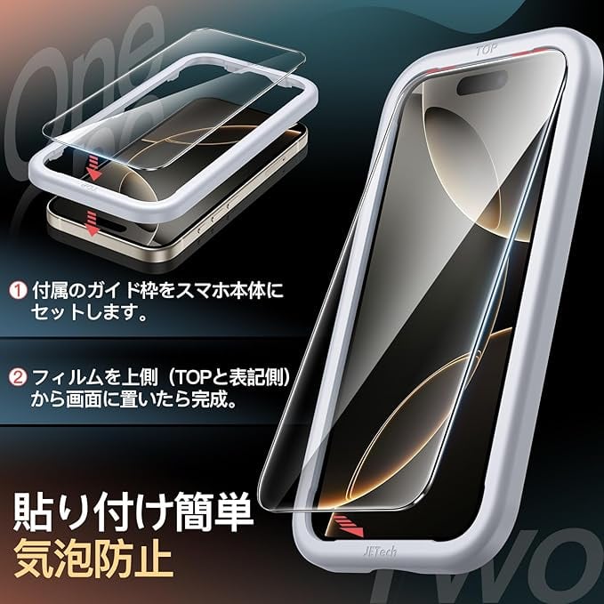 JETech iPhone 17 / iPhone 16 Pro 6.3インチ用 液晶保護フィルム 強化ガラス製 ガイド枠付き ケースに干渉なし HDクリア 2枚セット