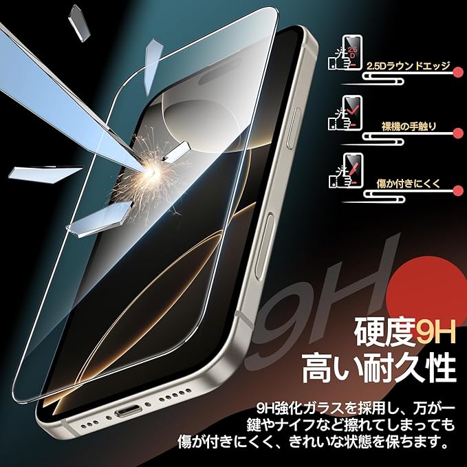 [互換性] iPhone 17 / iPhone 16 Pro 6.3インチ用の特別デザインで、優れた保護性を提供します。注:iPhone Air / 17 Pro / 17 Pro Max / iPhone 16 / 16 Plus / 16 Pro Maxには対応していません。思いやりのある2.5D曲面エッジのデザインで、ほとんどのケースと互換性があります。ご購入前におデバイスのモデルをご確認ください