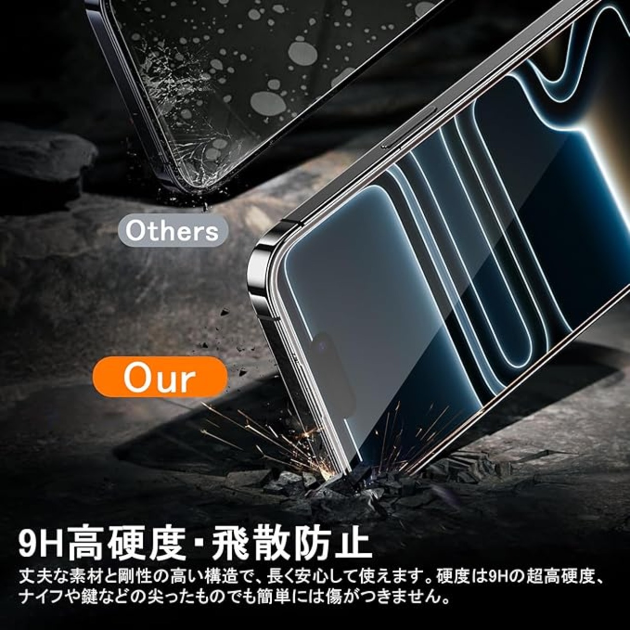【疎水性・撥油性抜群・耐衝撃】:フィルム表面はハードコート加工、オイルコート加工、平滑接触加工などの各種特殊加工組み合わせを採用し、油分、ほこり、指紋に対する抵抗力が非常に強い。9H硬度のカメラフィルムは傷や擦れに強い、ナイフや鍵などの尖ったものでも簡単には傷がつきません。フィルム表面には耐粉砕フィルムコーティングの加工も施されており、割れても破片の飛散を良好に抑制して傷付きを防止することができます。