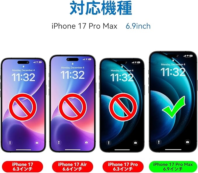 【アンチグレア・反射防止】対応機種:iPhone 17 Pro Max用アンチグレア ガラスフィルム。ガラス表面の反射防止加工が、光の映り込みや眩しさを大幅に低減します。視認性を向上させて画面を見えやすくすることで、長時間のスマホ操作や動画視聴でも目に優しく、疲れにくいです。