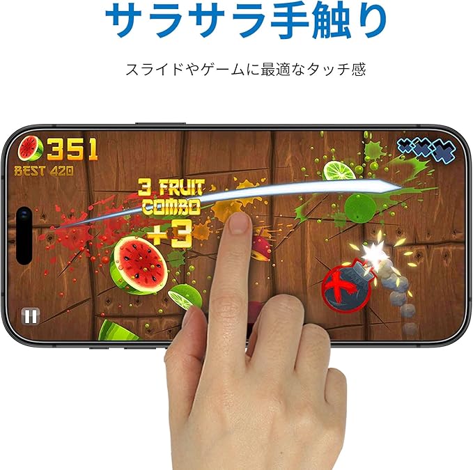 【サラサラ手触り】Mothca独自のナノエッチング技術で、ガラス表面に微細な凹凸構造を形成しております。指との接触面積が減少し、一般的な光沢フィルムとは異なる、サラサラとしたなめらかな操作感を実現しました。ゲームをプレイする時も指がスムーズに動き、いつでも快適でストレスのない操作を体験していただけます。