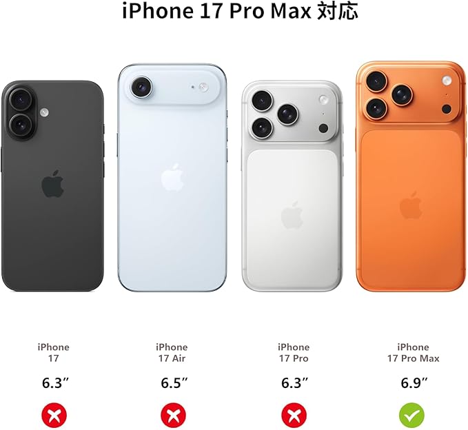 iPhone 17 Pro Max 対応 カメラ保護ガラスフィルム。
