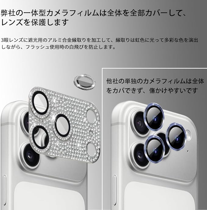 iPhone 17 Pro Max 用 カメラ保護ガラスフィルム カメラレンズ保護カバー アルミニウム合金+強化ガラス製 カメラカバー キズ防止 露出オーバー防止 耐衝撃 防塵 防滴 薄型 3D全面保護 【1枚】 シルバー iPhone 17 Pro Max 対応 カメラガラスフィルム | KAZESHOP