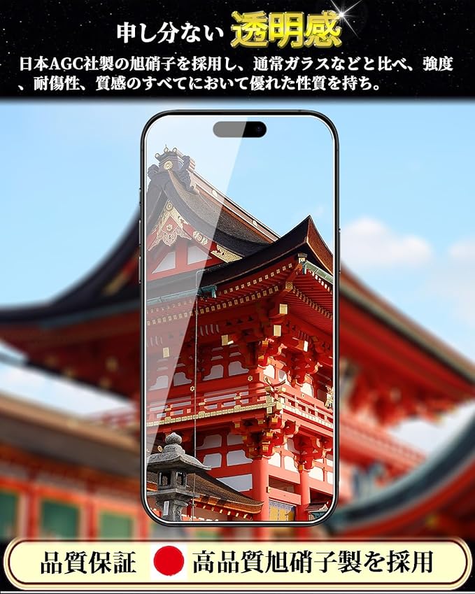 特徴 9H表面硬度,飛散防止,防指紋,撥油コーティング,撥水剤,耐衝撃性,ラウンドエッジ,気泡なし,高透過率,簡単貼り付け