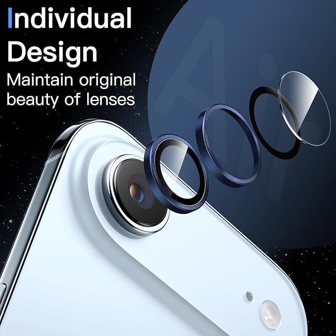JETech iPhone 17 Air用 カメラレンズフィルム 9H強化ガラス製 個別の金属リングカバー ガイド枠付き 6.5インチディスプレイ HDクリア 1セット (ブルー) | KAZESHOP
