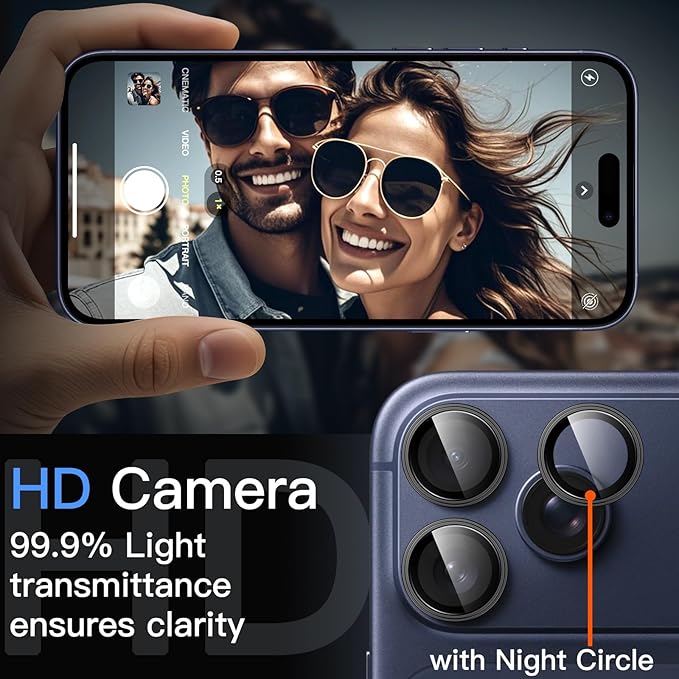 [包括的な保護] 高級アルミ合金の金属リングと9H硬度の強化ガラスカメラレンズカバーで構築されており、鍵、コイン、その他の鋭利な物体による不要な日常の傷や擦り傷から強力に保護します