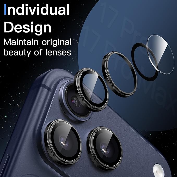 [互換性] iPhone 17 Pro 6.3インチ / iPhone 17 Pro Max 6.9インチ用にぴったり適合します。ご注意: iPhone 17 / Airには対応できません。カメラレンズをシームレスにカバーし、埃や水から守ります。ほとんどのスマホケースに対応しています