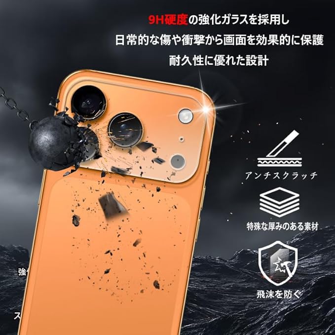 高品質素材: 9H硬度の強化ガラスを採用し、日常的な傷や衝撃から画面を効果的に保護。耐久性に優れた設計