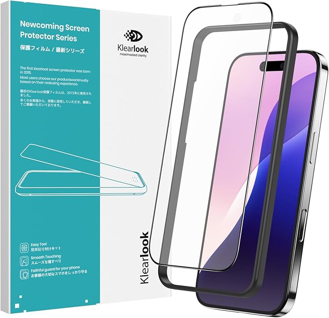 Klearlook アンチグレア ガラス フィルム iPhone 17 / iPhone 16 pro 用 ゲーム向け さらさら 指紋防止 反射防止 ガイド枠付き 貼りやすい 黒縁あり 全面保護 | KAZESHOP