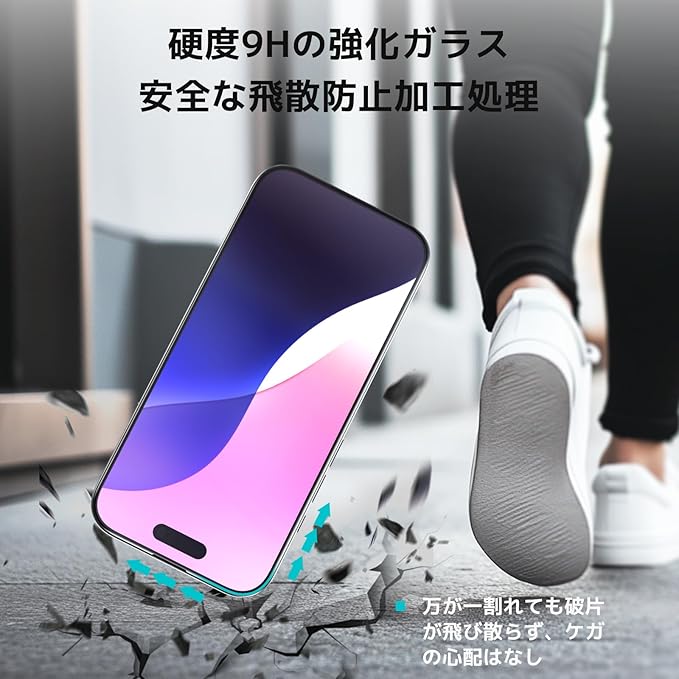 ✅【硬度9H&指紋防止】9H硬度で、ナイフなどの鋭利なものでも簡単に傷つけず、スマホの液晶面を保護します。指紋防止加工により、指紋や汚れが付きにくく、拭き取りも簡単です。日常使用による汚れからしっかりと保護します。