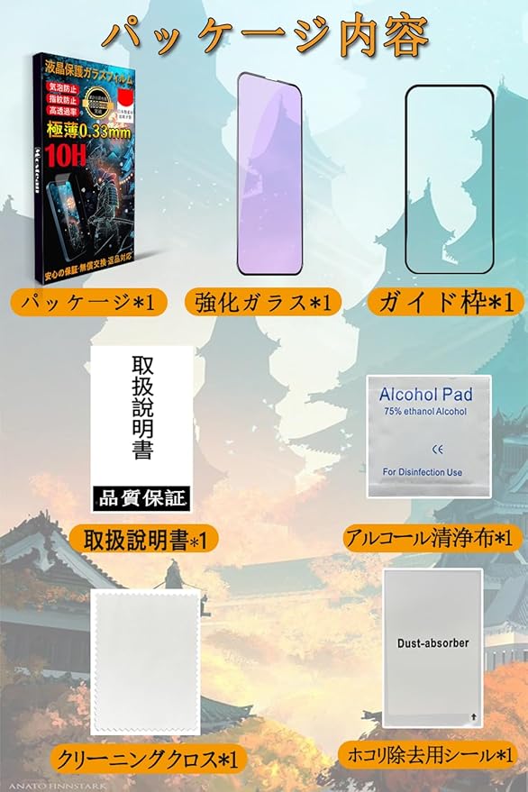 【日本旭硝子素材・最強硬度10H・飛散防止】ガラスフィルム一般的な液晶保護フィルムの約6倍の強度。衝撃は強化ガラスに吸収されますので、ディスプレイにかかる衝撃負荷を軽減し。ディスプレイが破損することを防ぎます。万が一の破損時も飛散防止加工によって破片はフィルムに張り付いた状態で破片がほとんど飛び散らない安全性の高いガラスになっています。